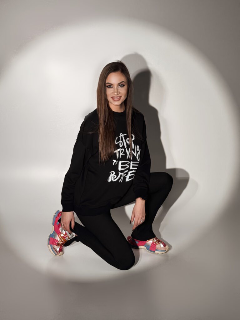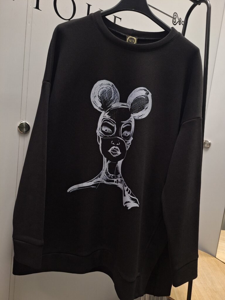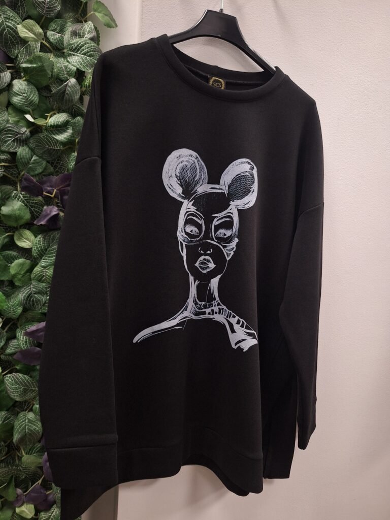 Oversize džemperis su šoniniu skeltuku “Spicy woman” – juoda