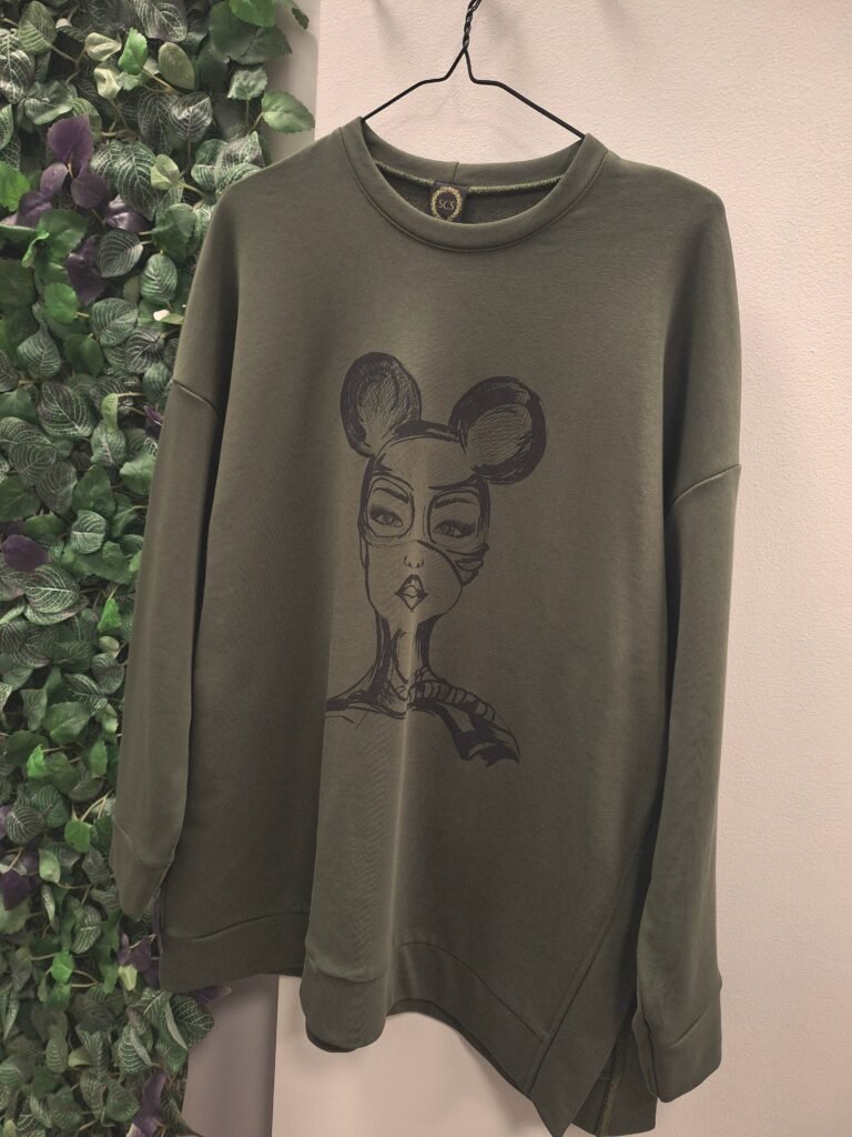 Oversize džemperis su šoniniu skeltuku “Spicy woman” – chaki