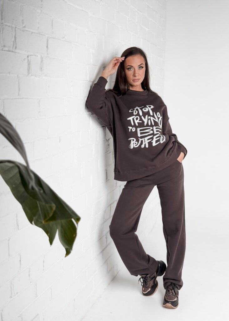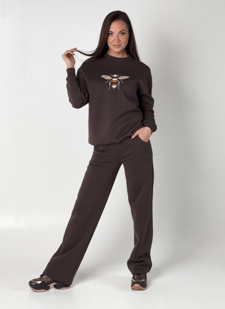 Laisvalaikio kostiumėlis su dekoratyvine siūle “Perfect” (rudas pūkas)